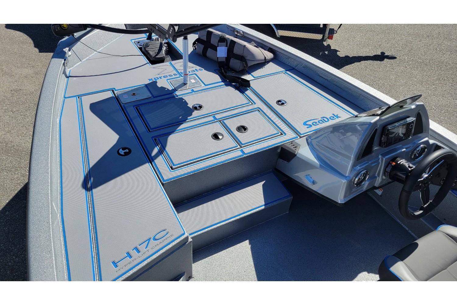 -Appearance package in blue, blue Seadek, seat stripes, hull graphics.
