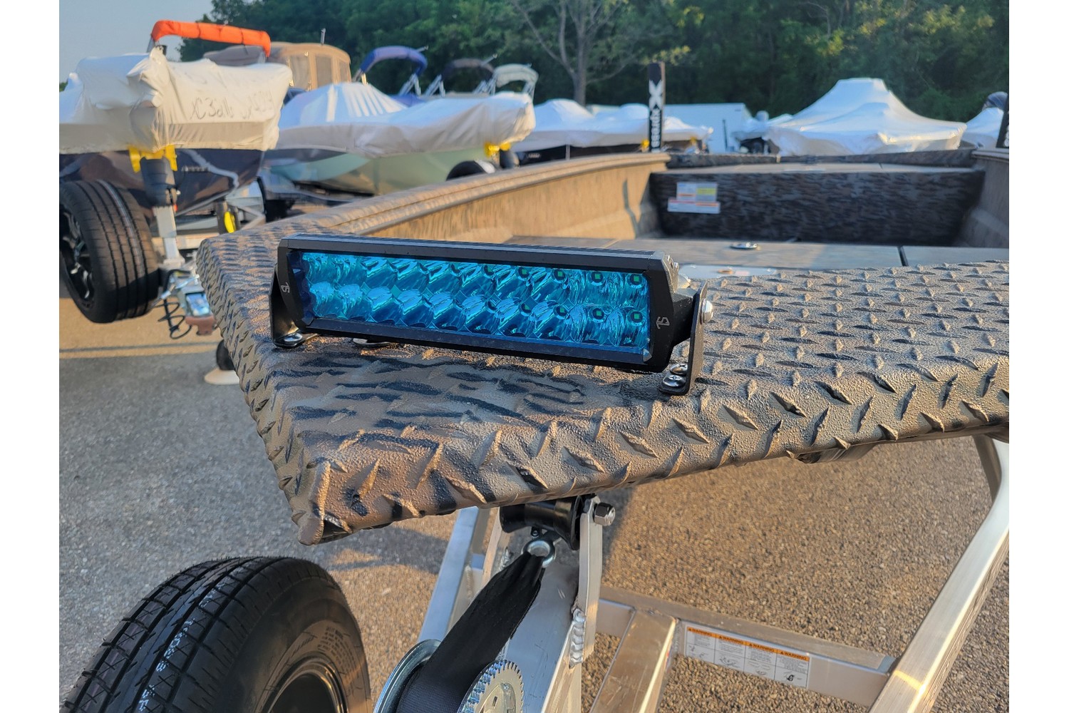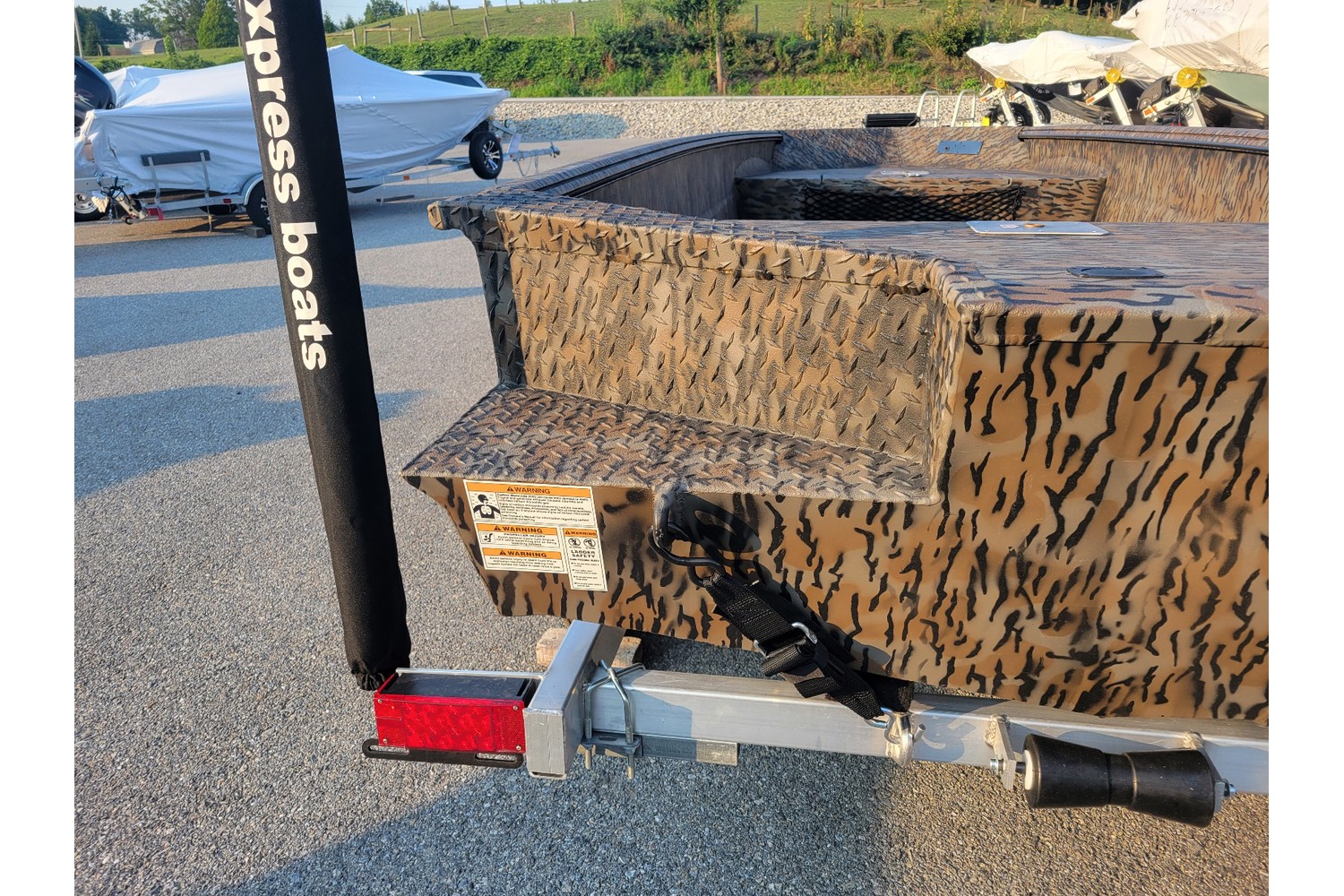 -Aluminum trailer w/ 13” aluminum wheels & radial tires. Matching spare & mount.