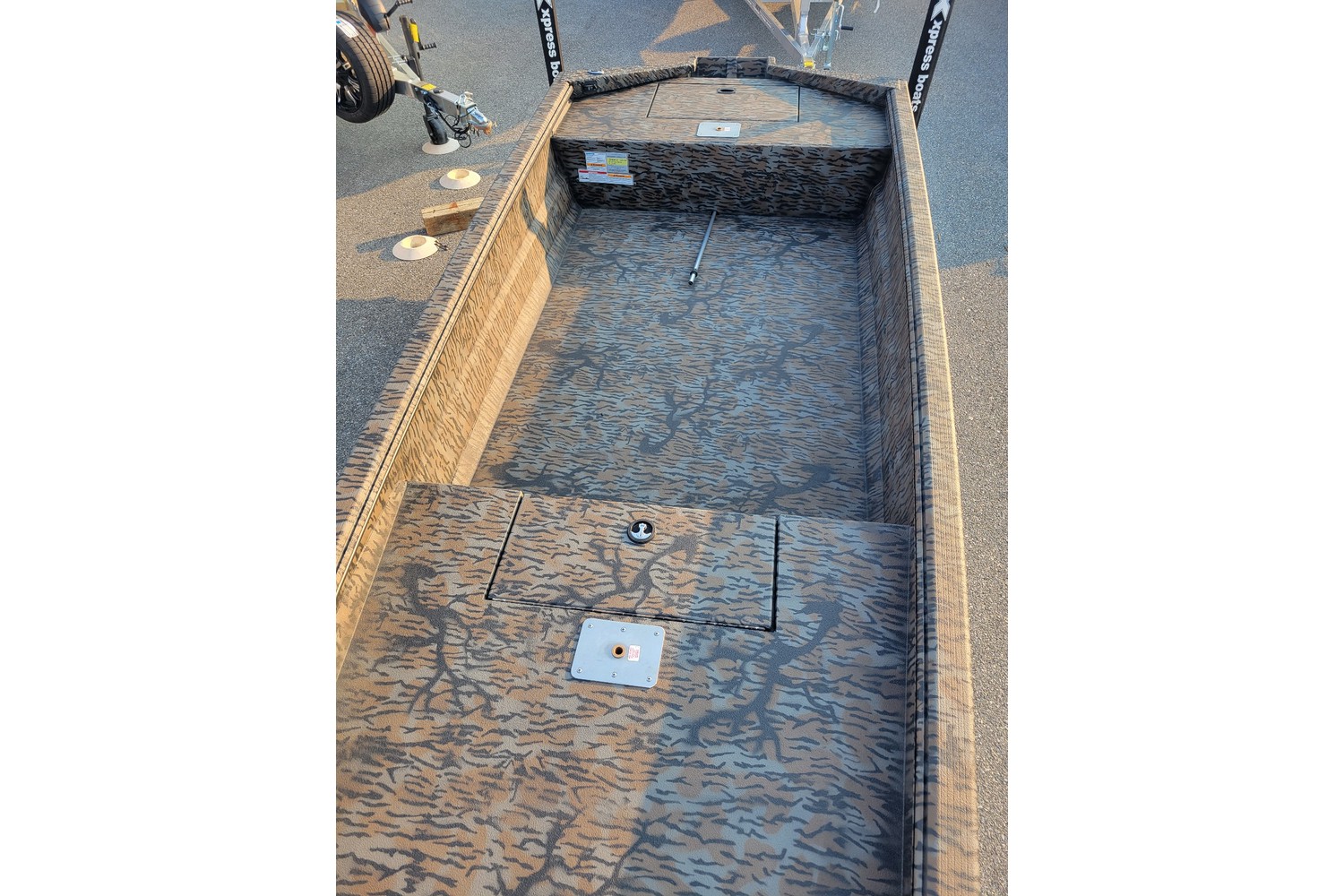 2025 XTS16, 16’ mod V all welded duck hunting boat. Spray in floor liner. Aluminum welded in floor. Camo interior & exterior.