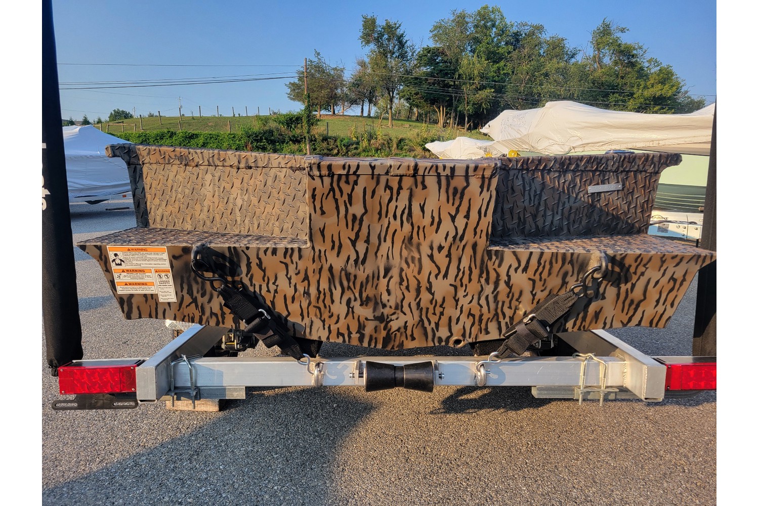 -Aluminum trailer w/ 13” aluminum wheels & radial tires. Matching spare & mount.