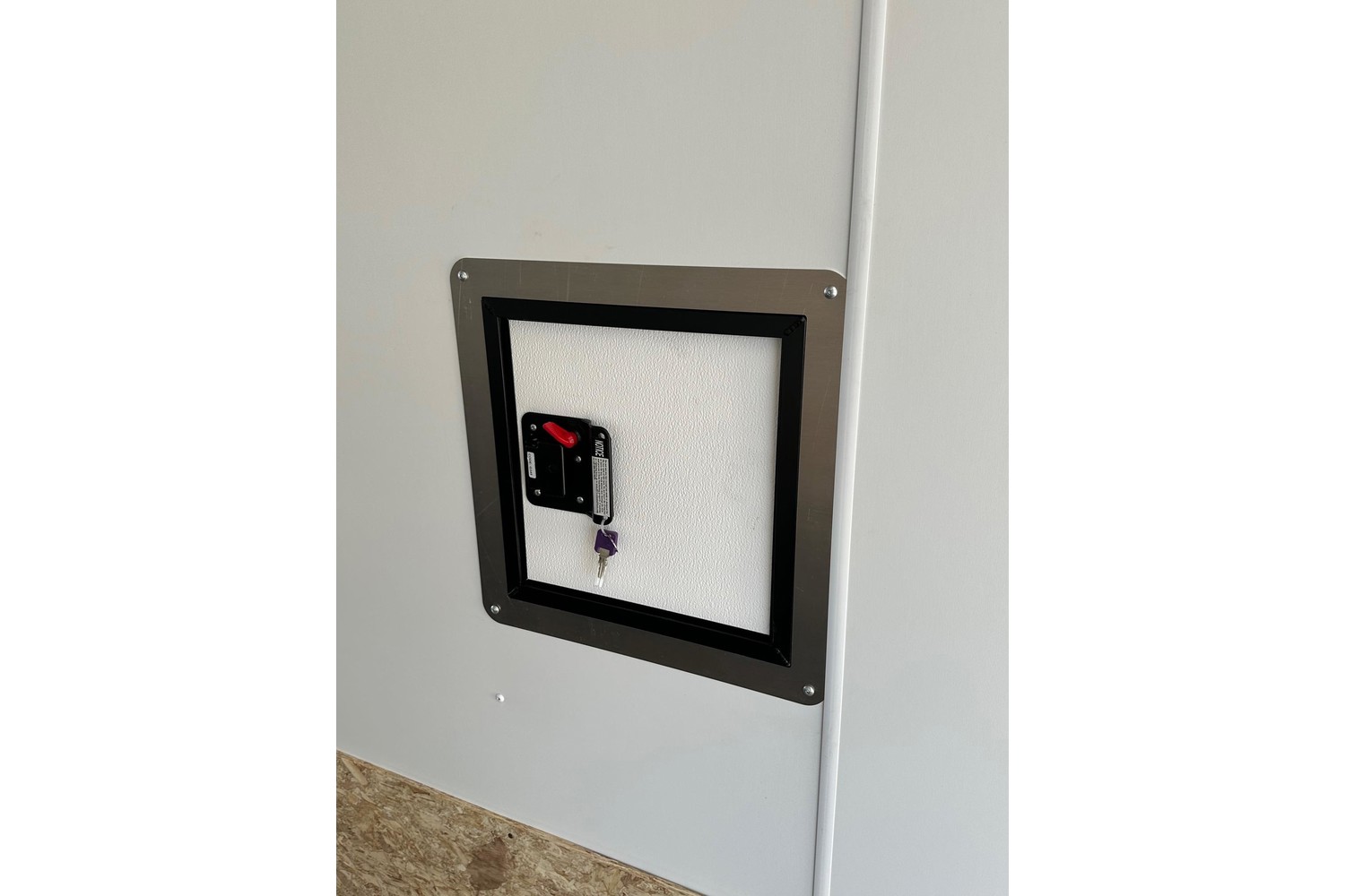 -White luan walls.