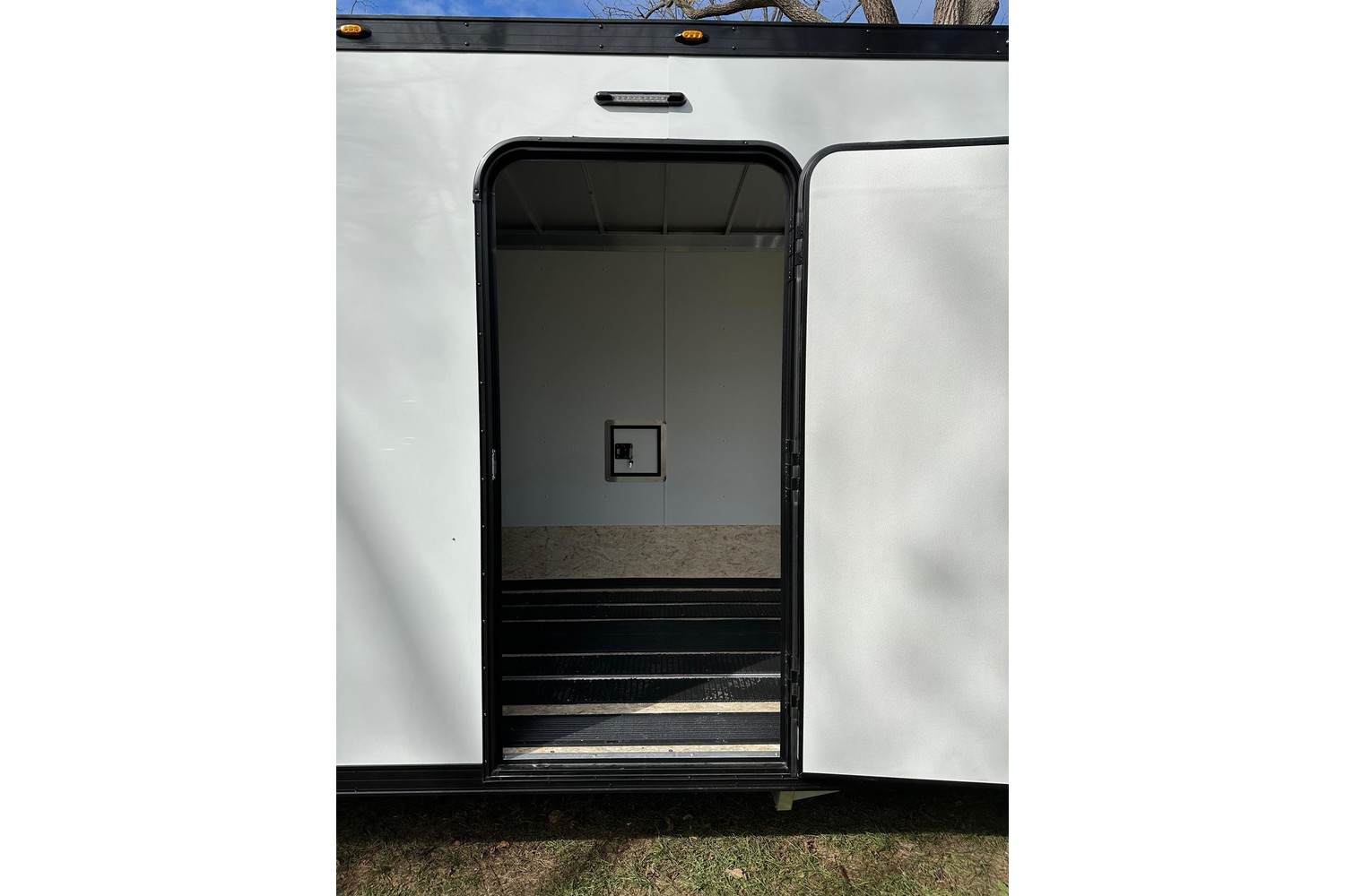 -7’ 5” interior width. 87” interior height. 82” rear door height.
