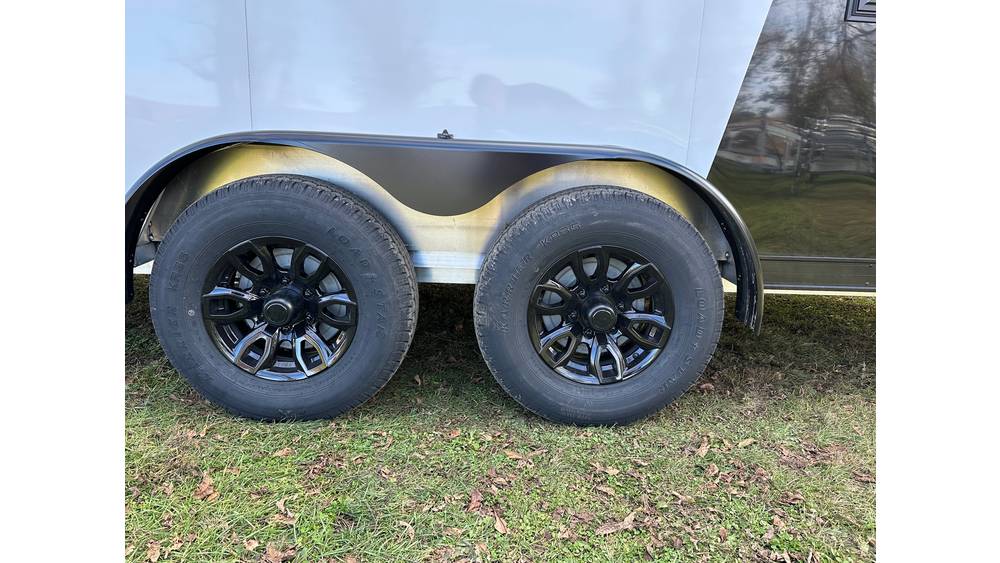 -Tandem galvanized torsion axles w/ electric brakes. 15” aluminum wheels.
