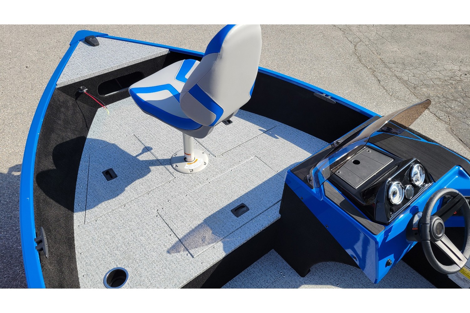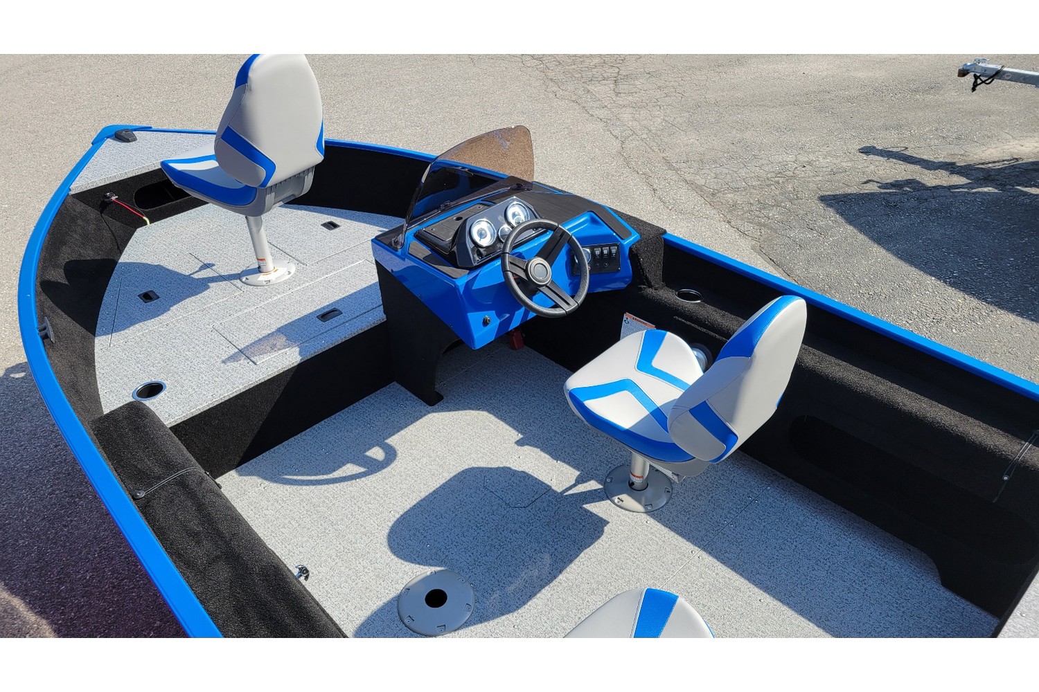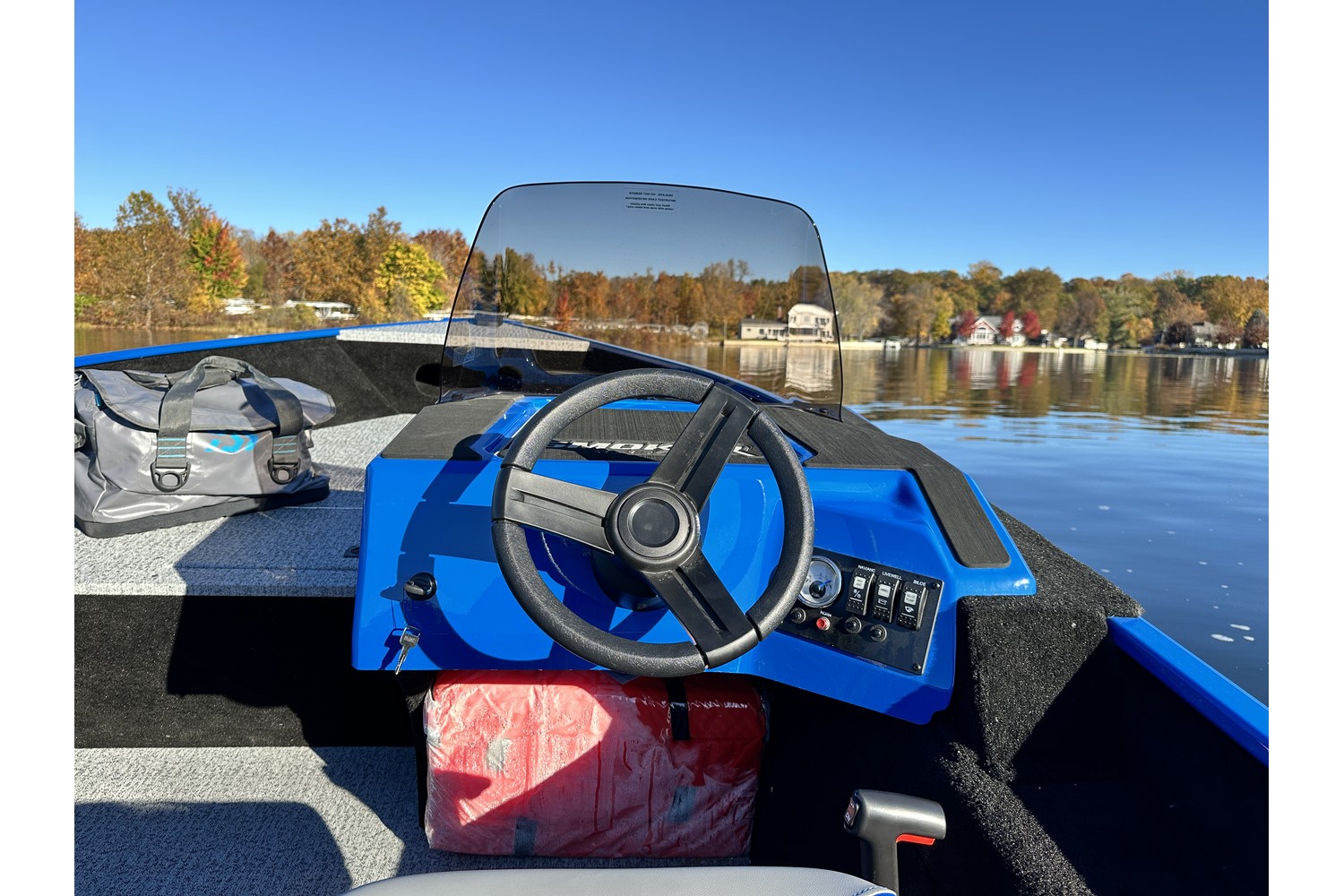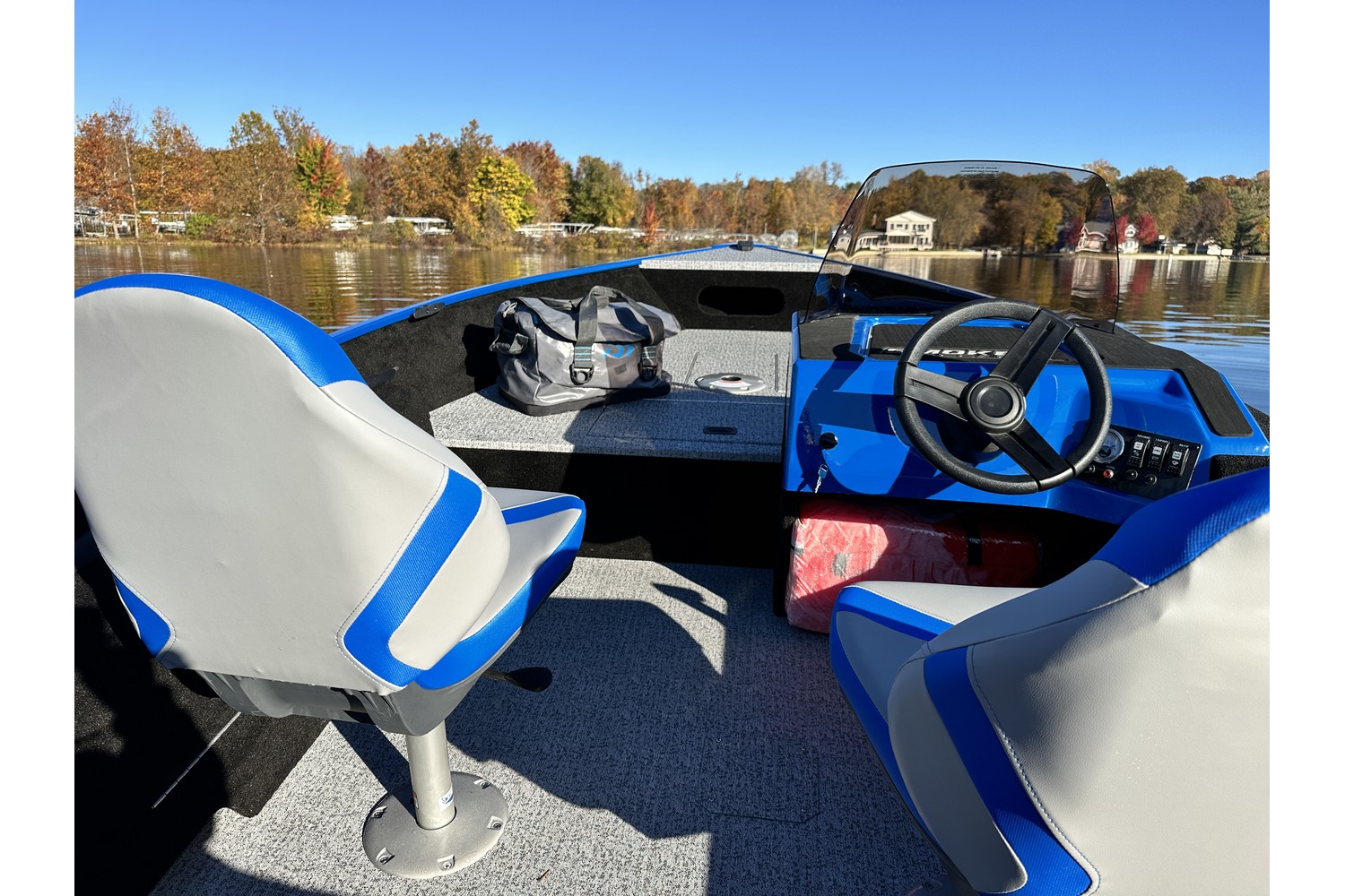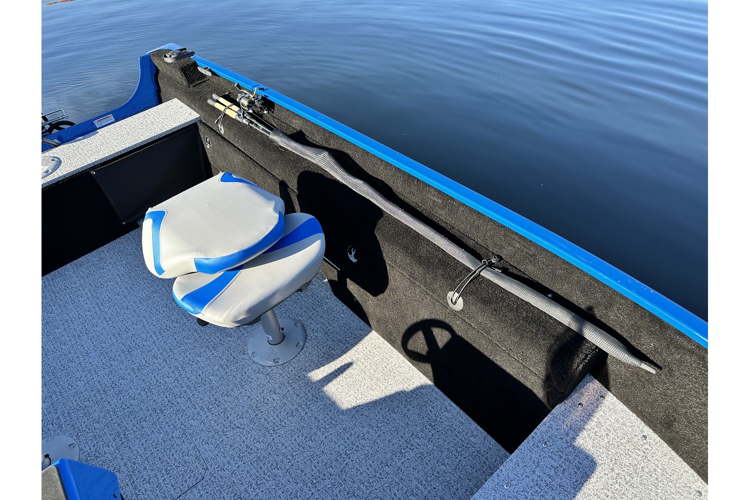 With a length of 16.2 feet and a beam of 81 inches, this aluminum-hulled beauty is built for stability and maneuverability. The 10-degree deadrise ensures a smooth ride through choppy waters, while the open-top helm roof provides ample shade on sunny days. The helm seating configuration includes a comfortable chair for the captain, offering a commanding view of the surrounding waters.