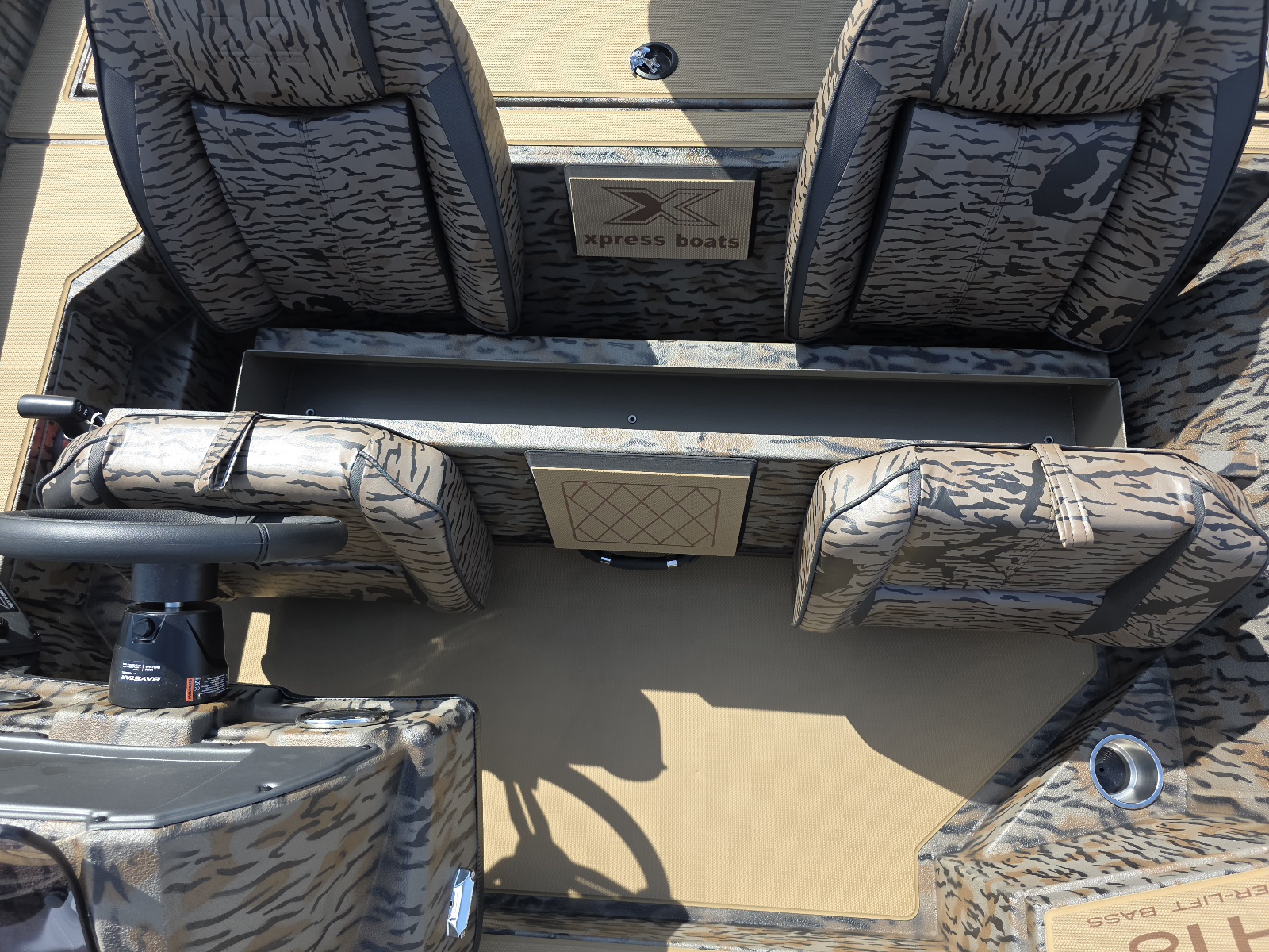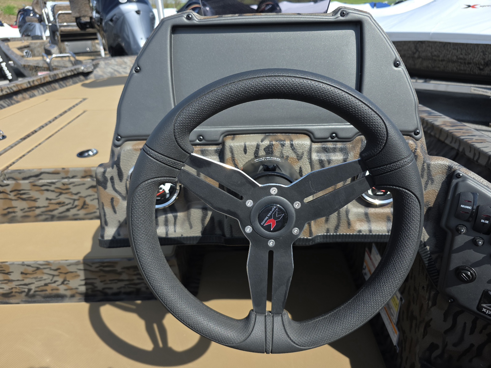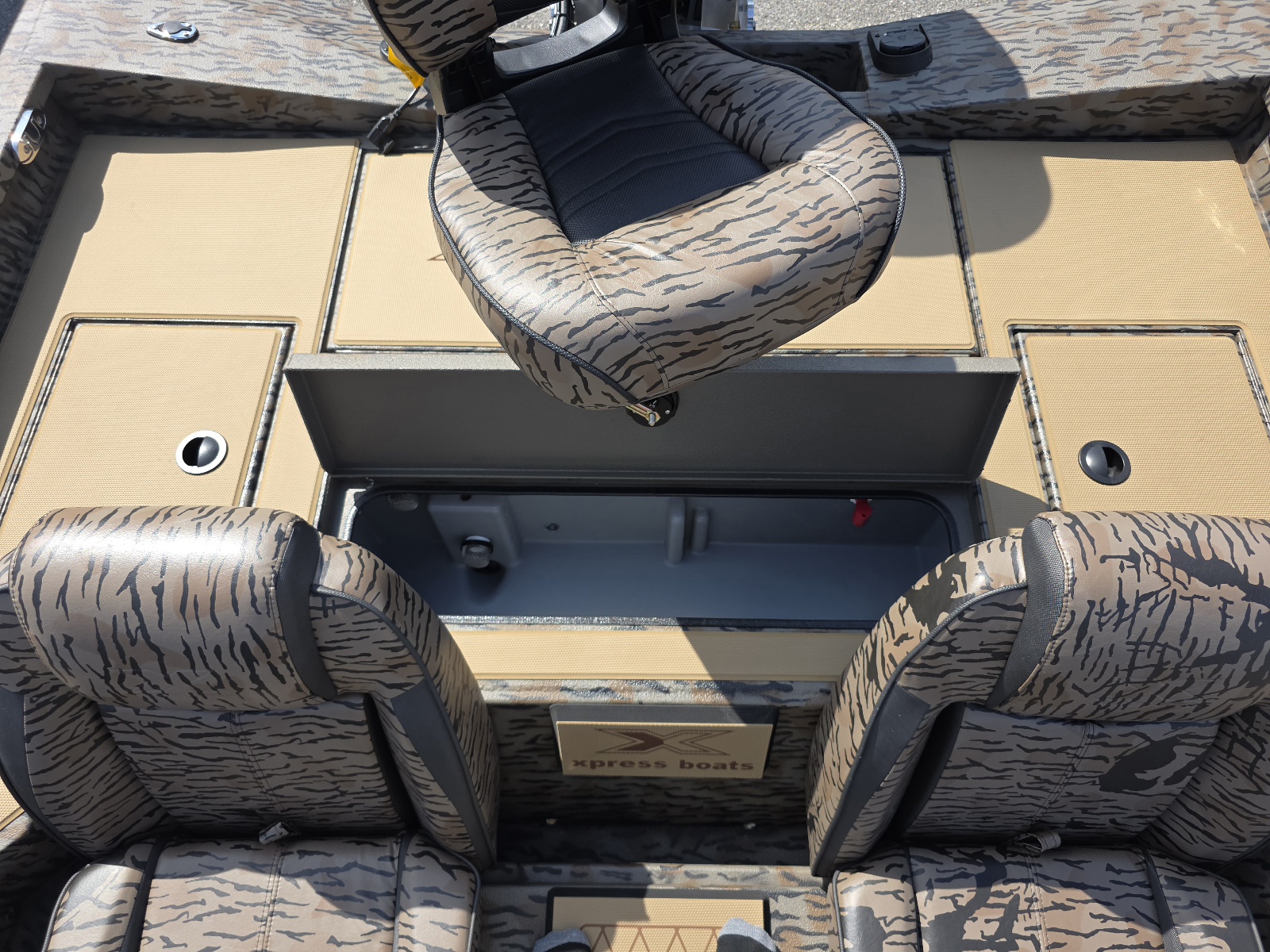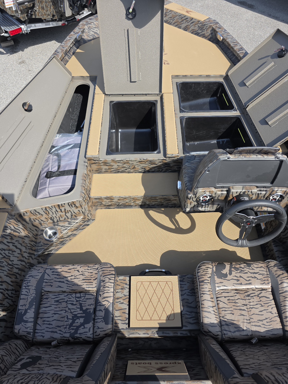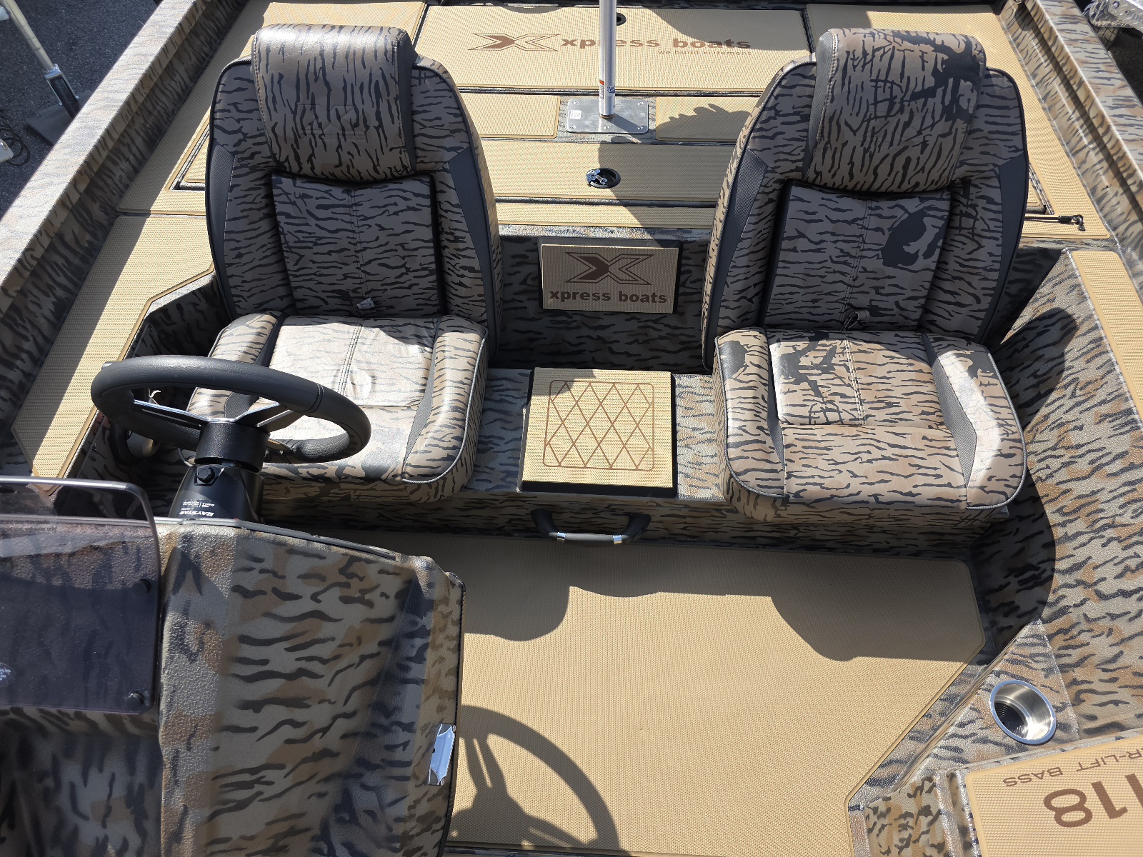 2026 Xpress H18 Bass. 18’ bass boat. Duck boat package, camo paint & camo Seats. Seadek in cappuccino. Seadek in cockpit.