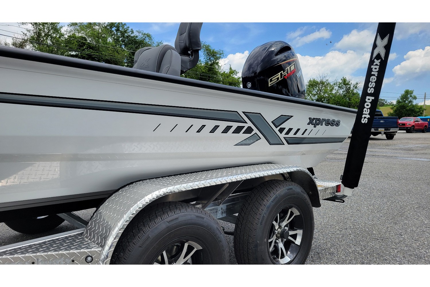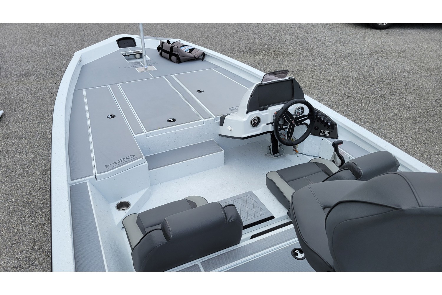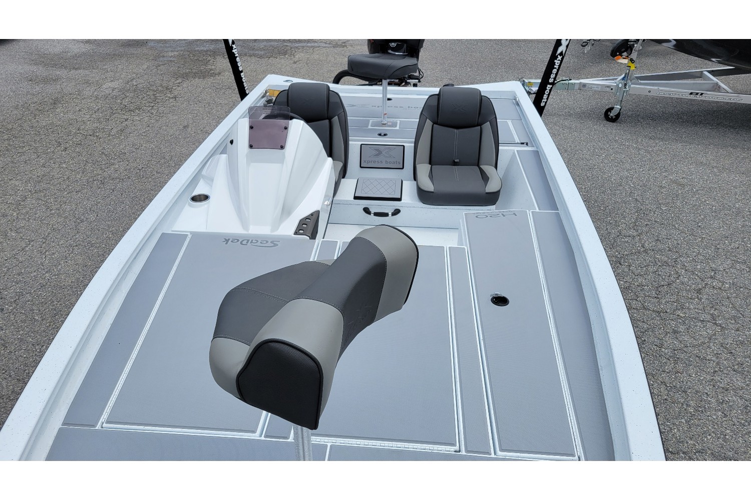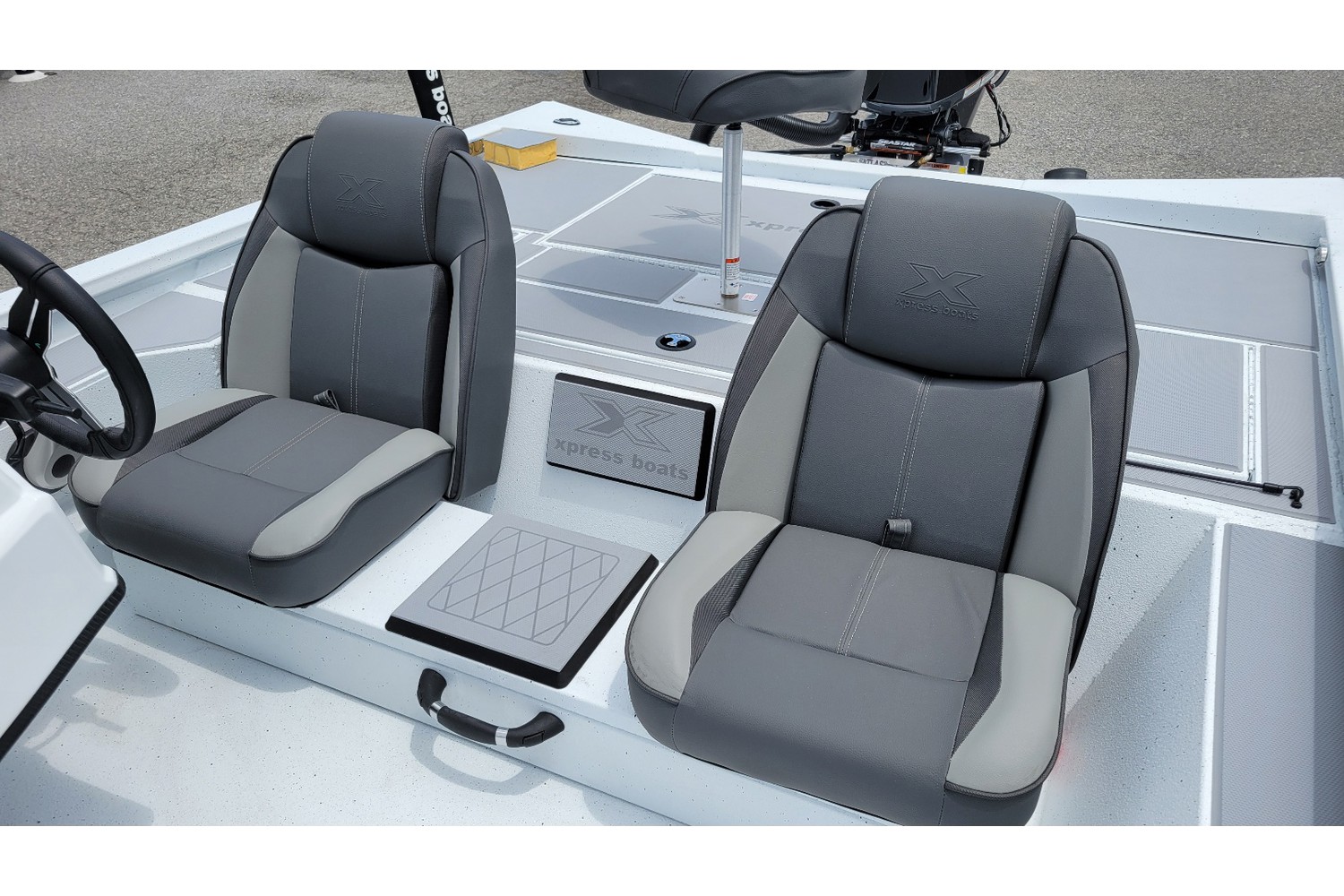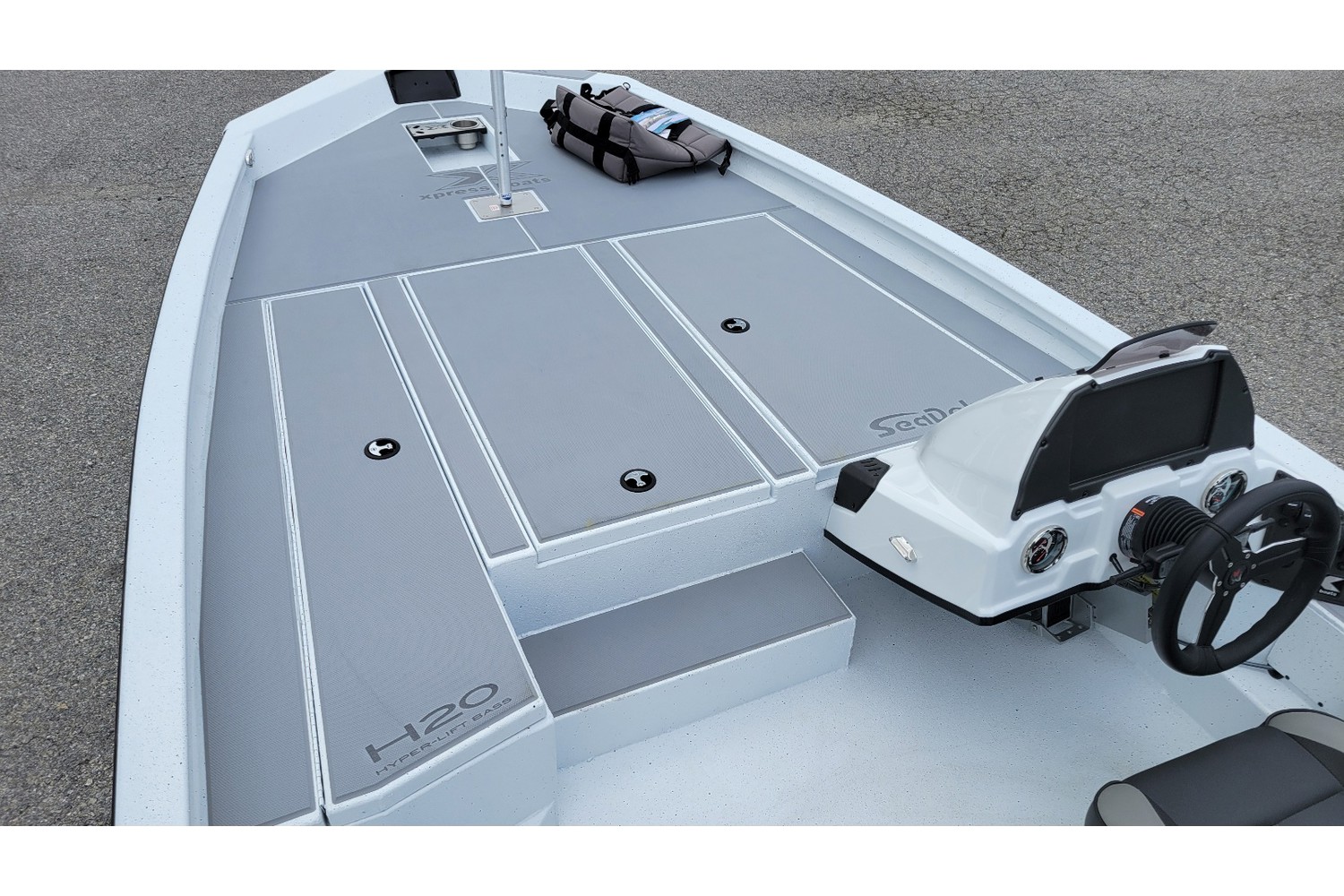 2026 Xpress H20 Bass. 20’ bass boat w/ hyperlift hull. White hull & liner. grey Seadek. Charcoal seats.