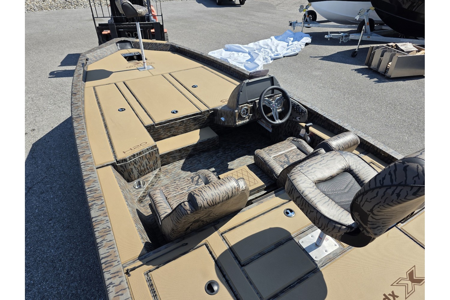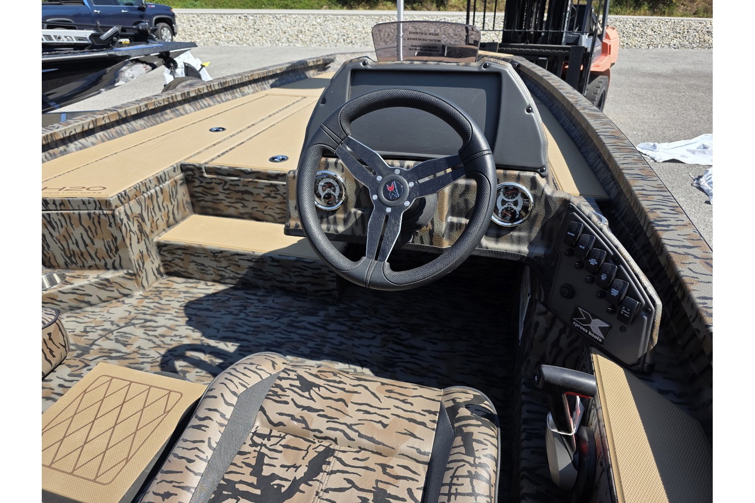 2026 Xpress H20 Bass. 20’ bass boat w/ hyperlift hull. Camo hull & liner. Cappucino Seadek. Camo seats.