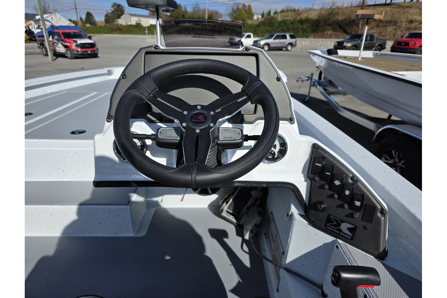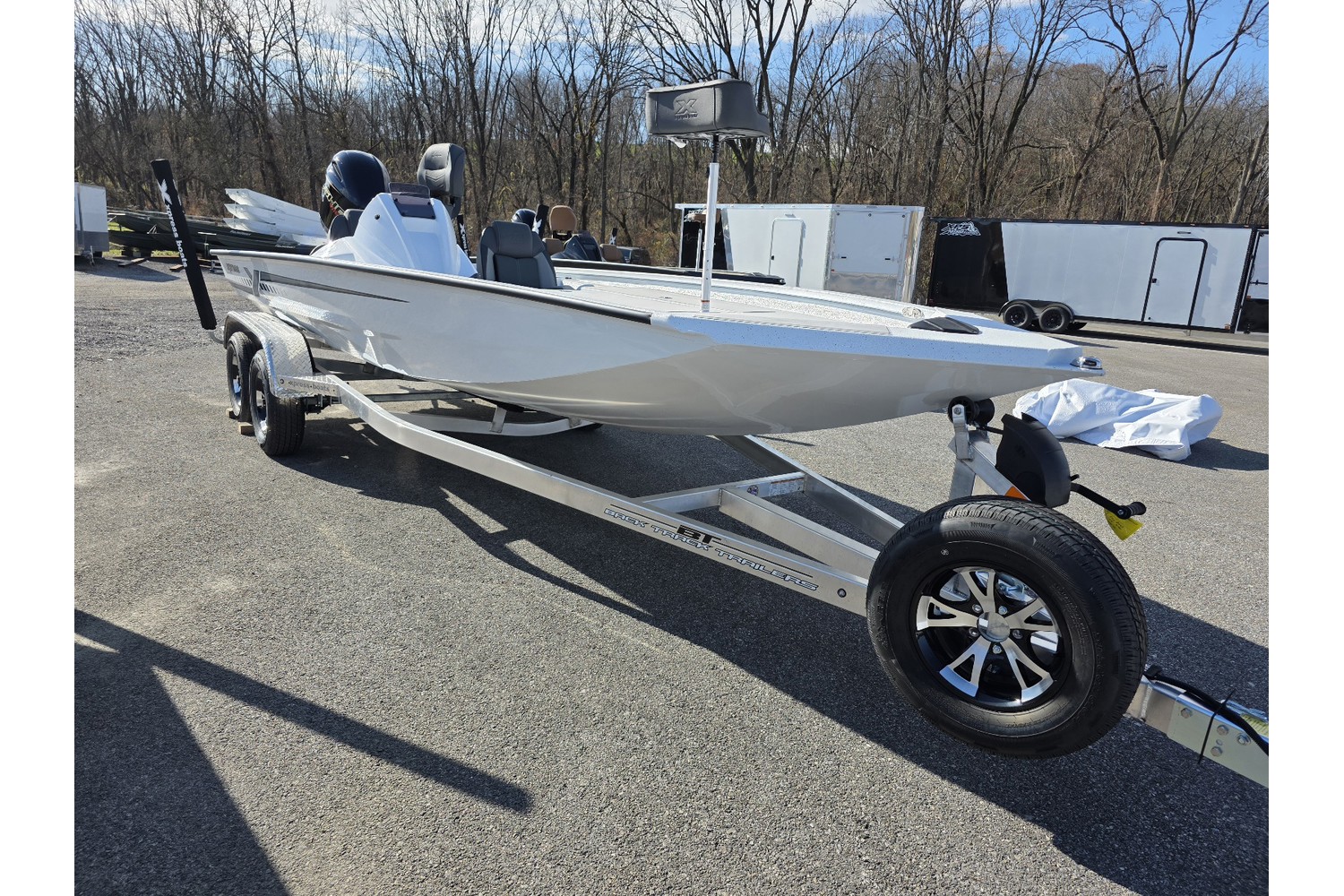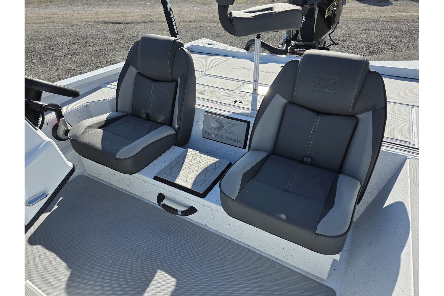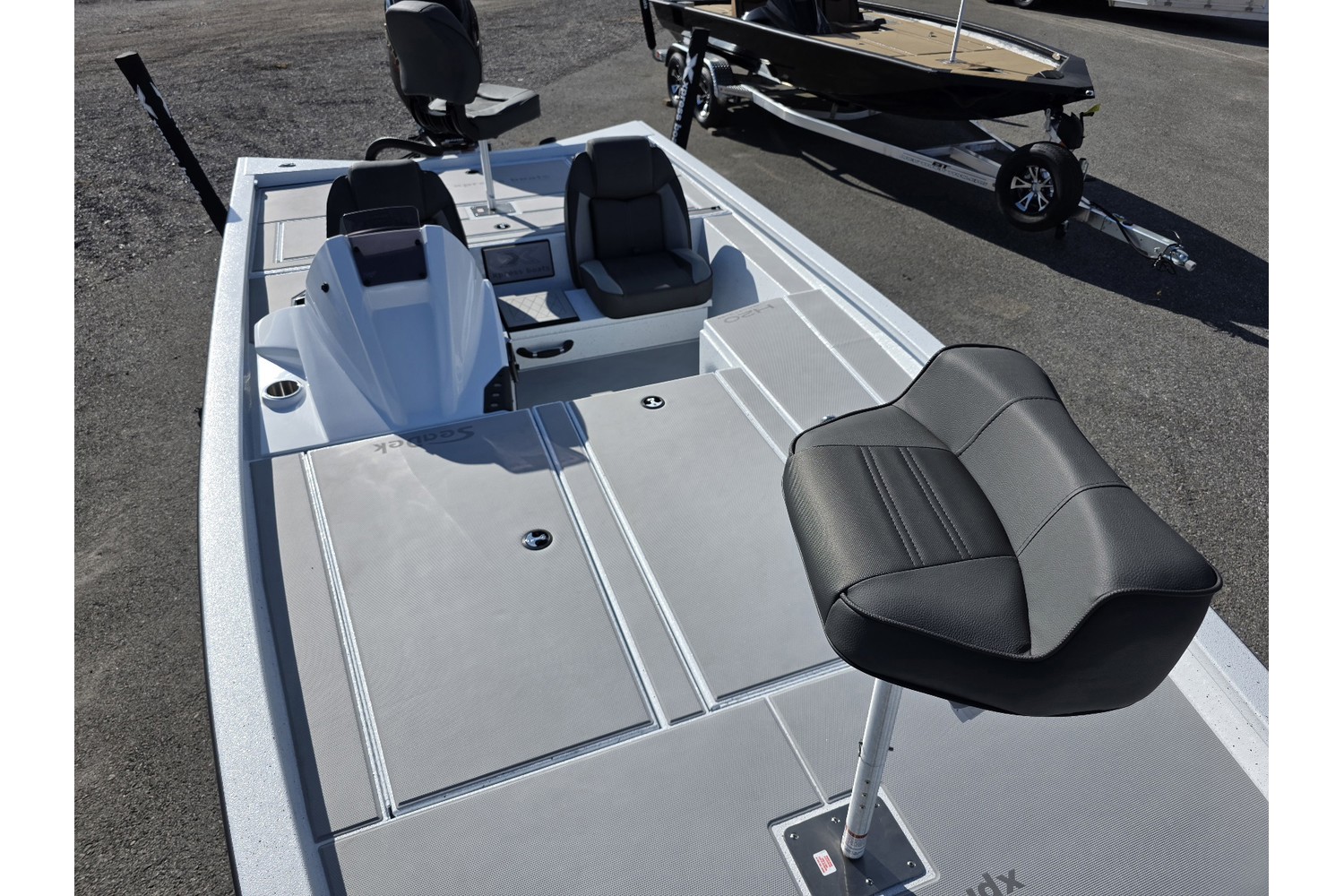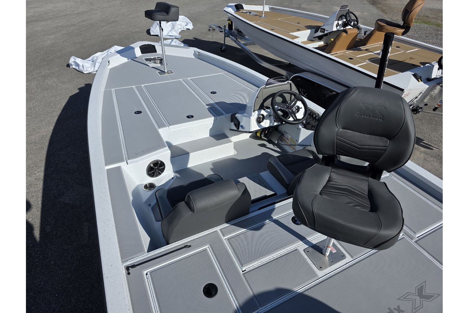 2026 Xpress H20 Bass. 20’ bass boat w/ hyperlift hull. White hull & liner. grey Seadek. Charcoal seats.