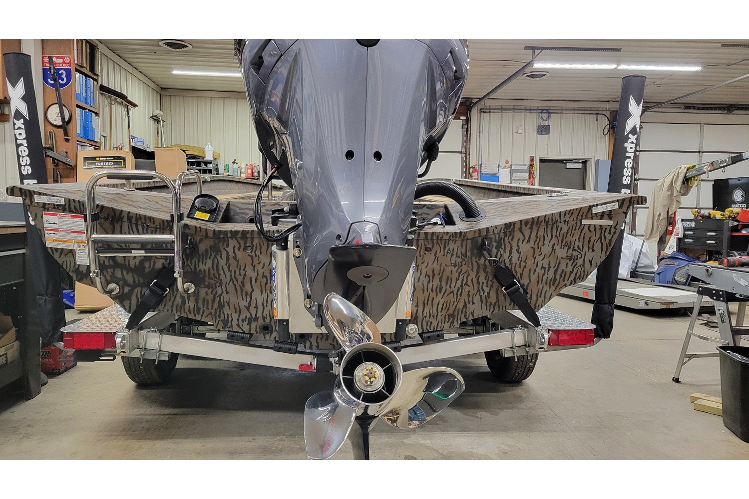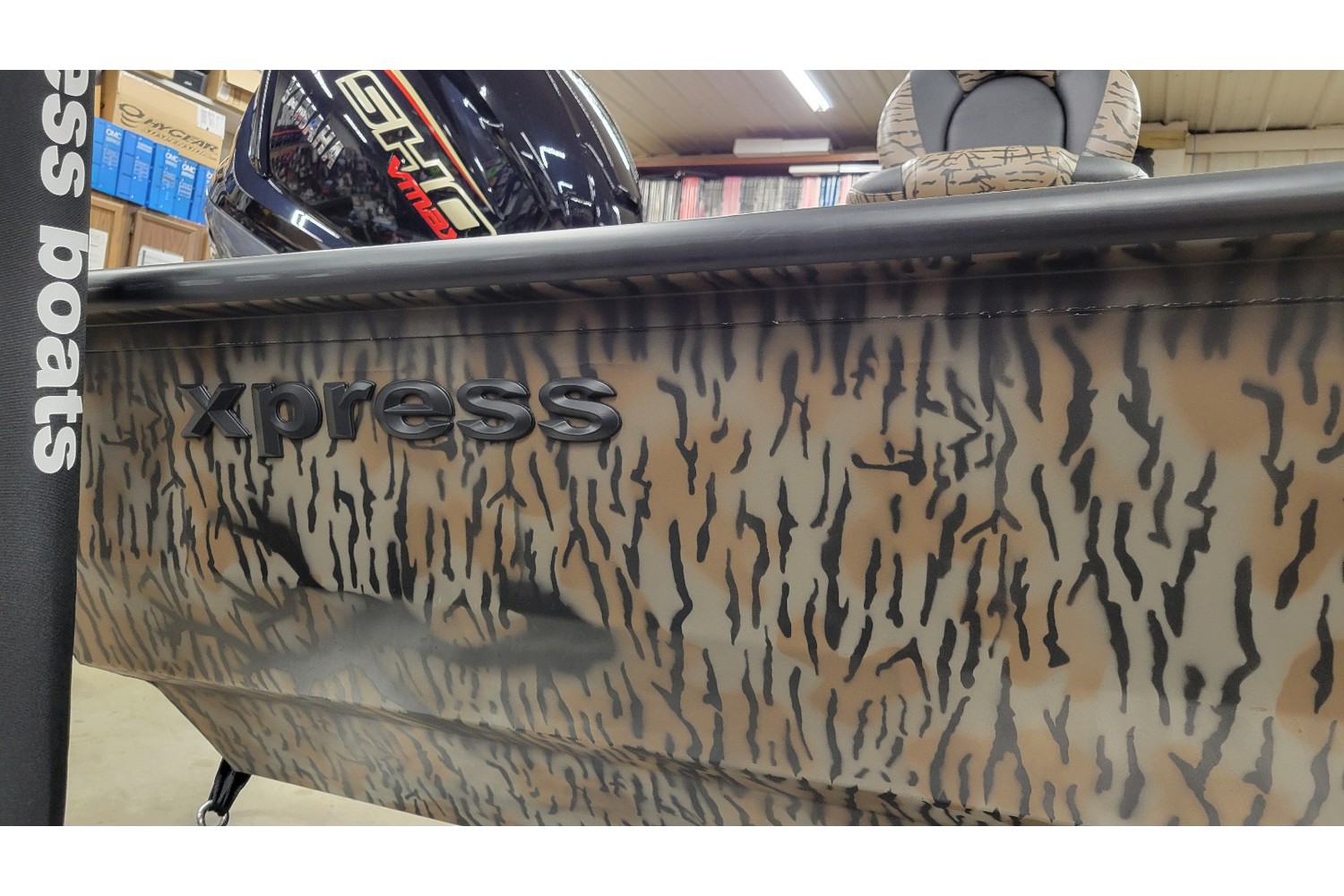 2026 Xpress H22 Bay. 22’ center console w/ hyper lift hull. Duck boat package w/ camo hull & floor liner, camo seats. Seadek in cappuccino w/ black lines.