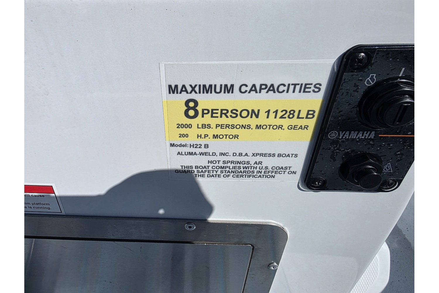 Invite your friends to join you on this fishing extravaganza, as the Xpress Boats Hyper-Lift Bay H22B can accommodate up to 8 passengers with a weight capacity of 2000 pounds. The open-top helm roof allows you to bask in the sun while still having full control of the vessel.