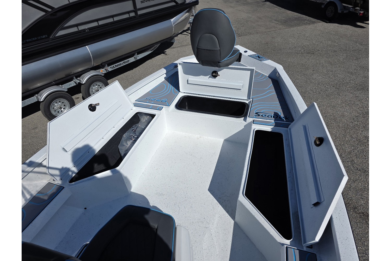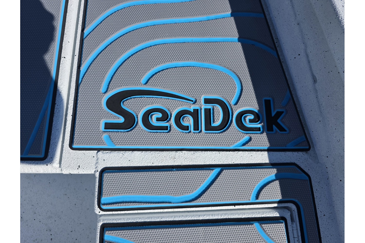 -Appearance package in Bahama blue, Bahama blue Seadek, seat stripes, hull graphics.